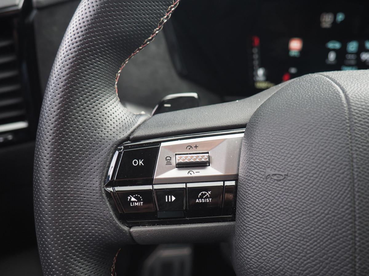 Volant cuir, réglable en hauteur, réglable en profondeur, multi-fonctions et commandes tactiles